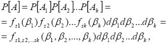 Legyen továbbá A véletlen esemény valamennyi zi értéknek a fenti intervallumba esése, vagyis A=A1A2.Ak. Az elfogadott kikötések értelmében zi véletlen értékek egymástól függetlenek, ezért Ai események szintén egymástól függetlenek lesznek. Akkor: